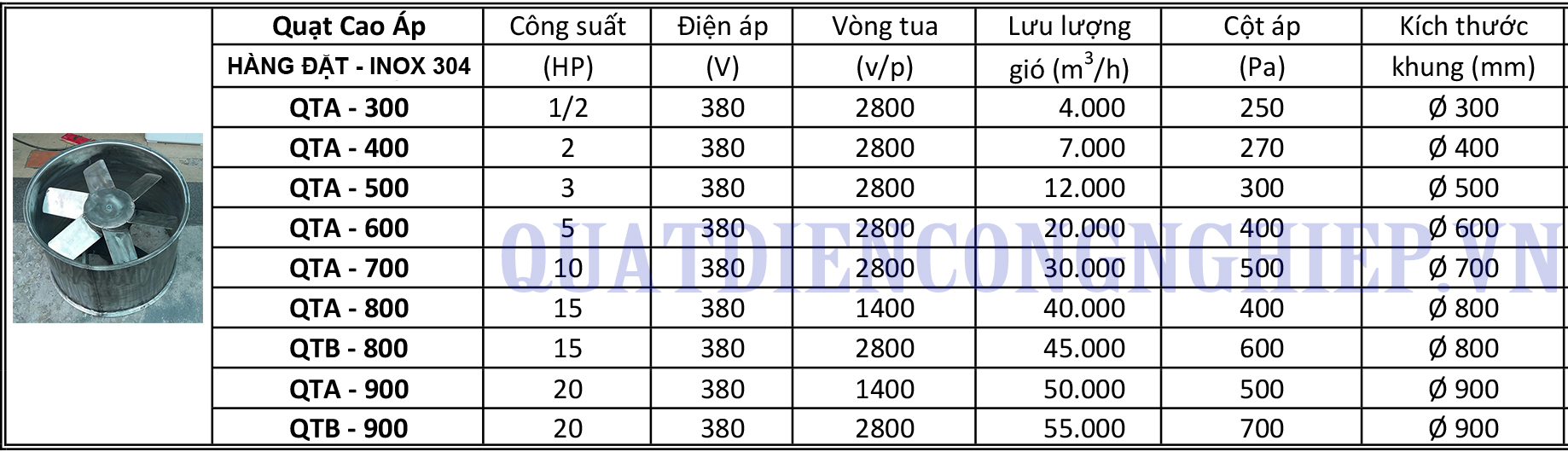 Quạt hướng trục Inox chất lượng cao Series QTA-IN