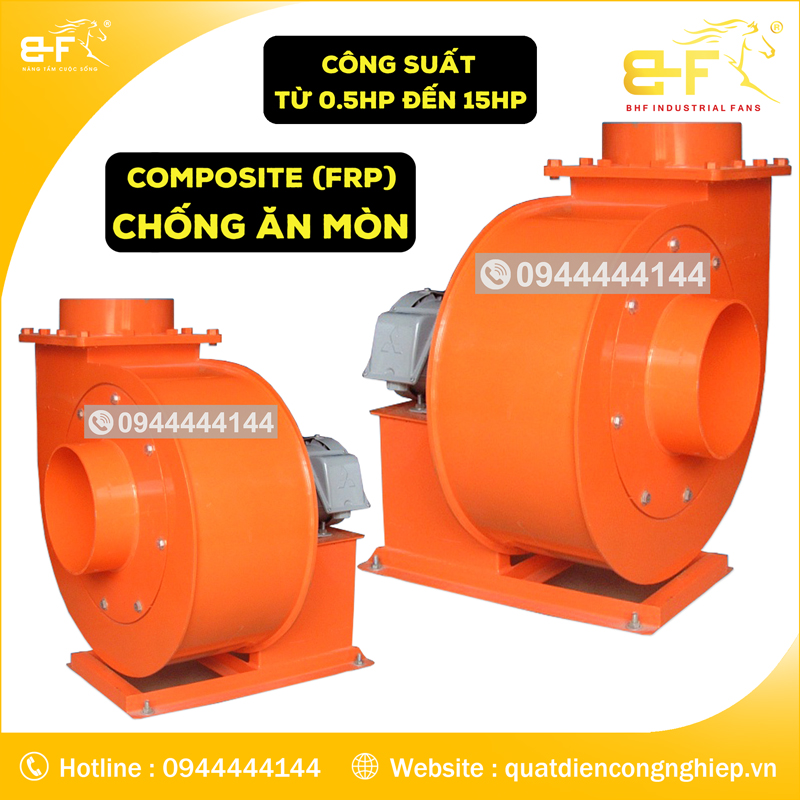 (Kiểu dáng quạt ly tâm nhựa composite kiểu truyền động trực tiếp, có công suất từ 0.5HP đến 15HP)