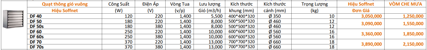 Quạt thông gió vuông nhập khẩu Soffnet DF40